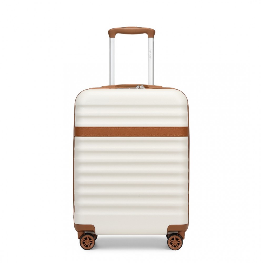 KSK2484 - Kono 20 Zoll Stilvoll Leichtes Gewicht Harte Schale ABS+PC Kabinen-Tragekoffer mit TSA-Schloss für erhöhte Sicherheit - Creme und Braun