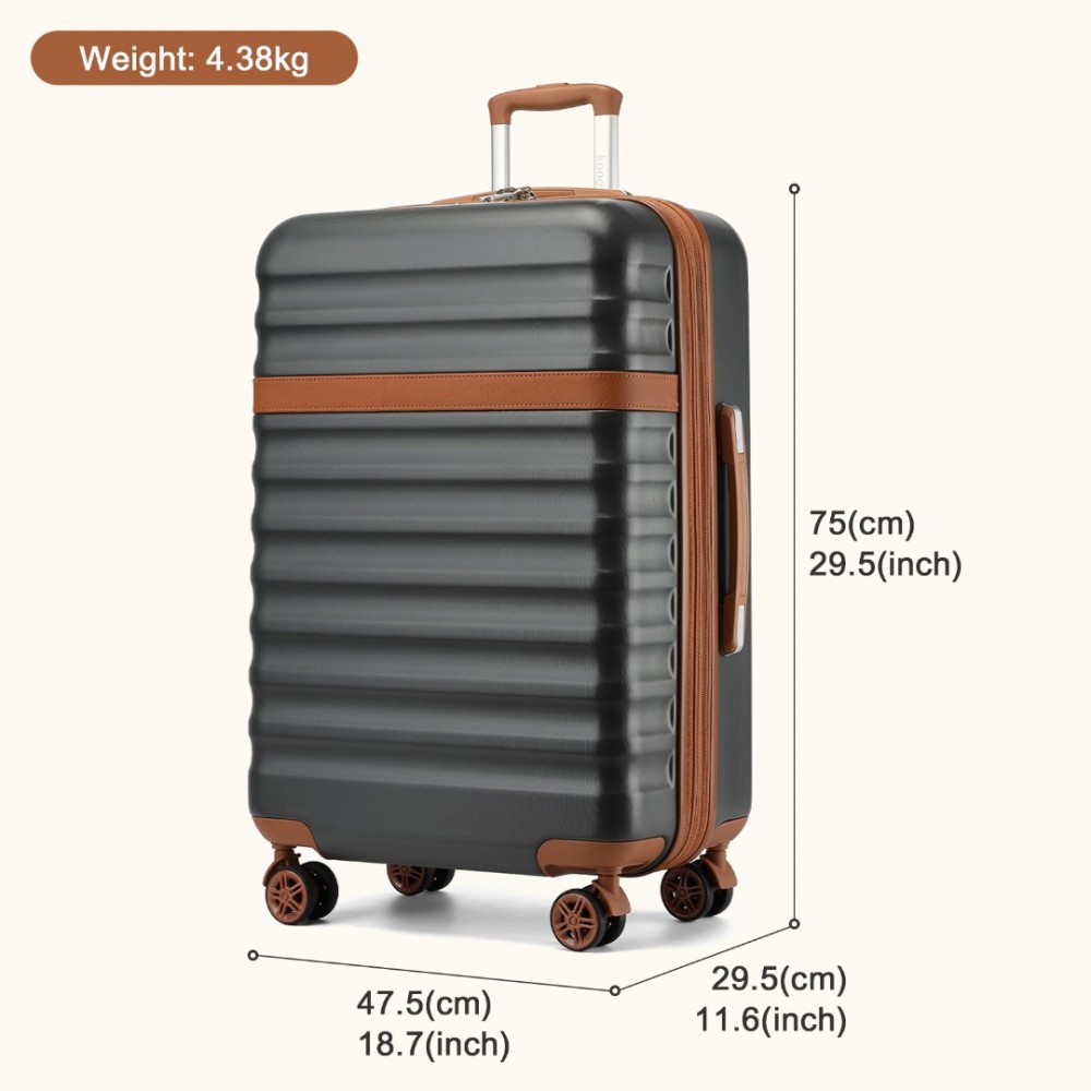 KSK2484 - Kono 28 Zoll Ausbaufähig Leichtgewicht Harte Schale ABS+PC Check-In-Koffer mit TSA-Schloss Ideal für längere Reisen und sicheres Reisen - Grau und Braun