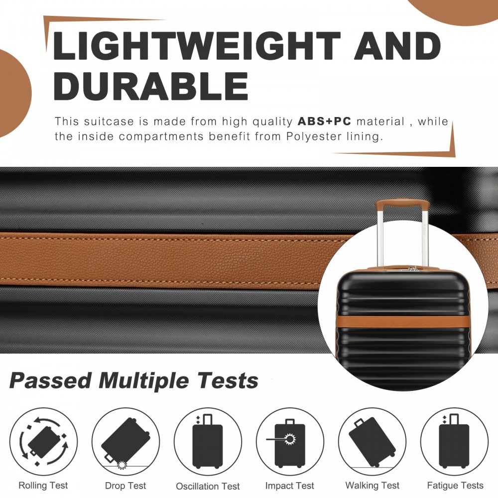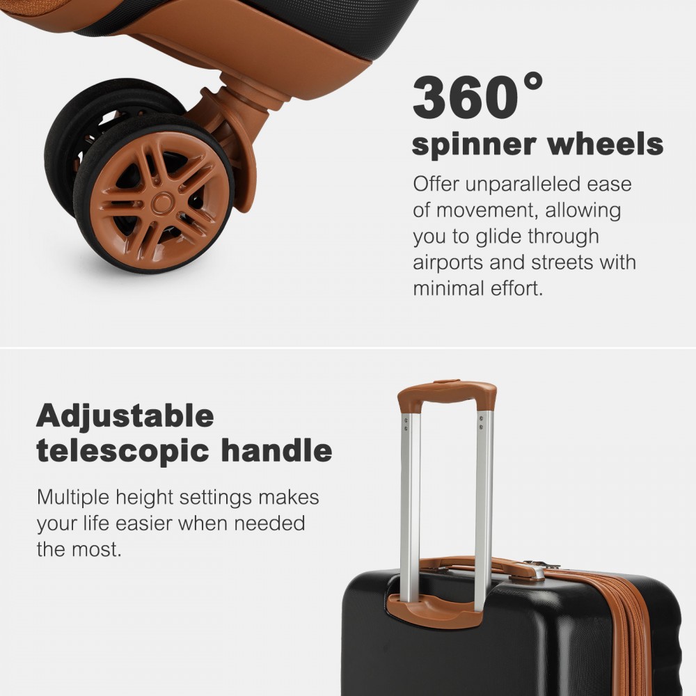 KSK2484 - Kono 32-Zoll ABS+PC Hartschalen-Spinner-Koffer mit Teleskopgriff - Schwarz und Braun