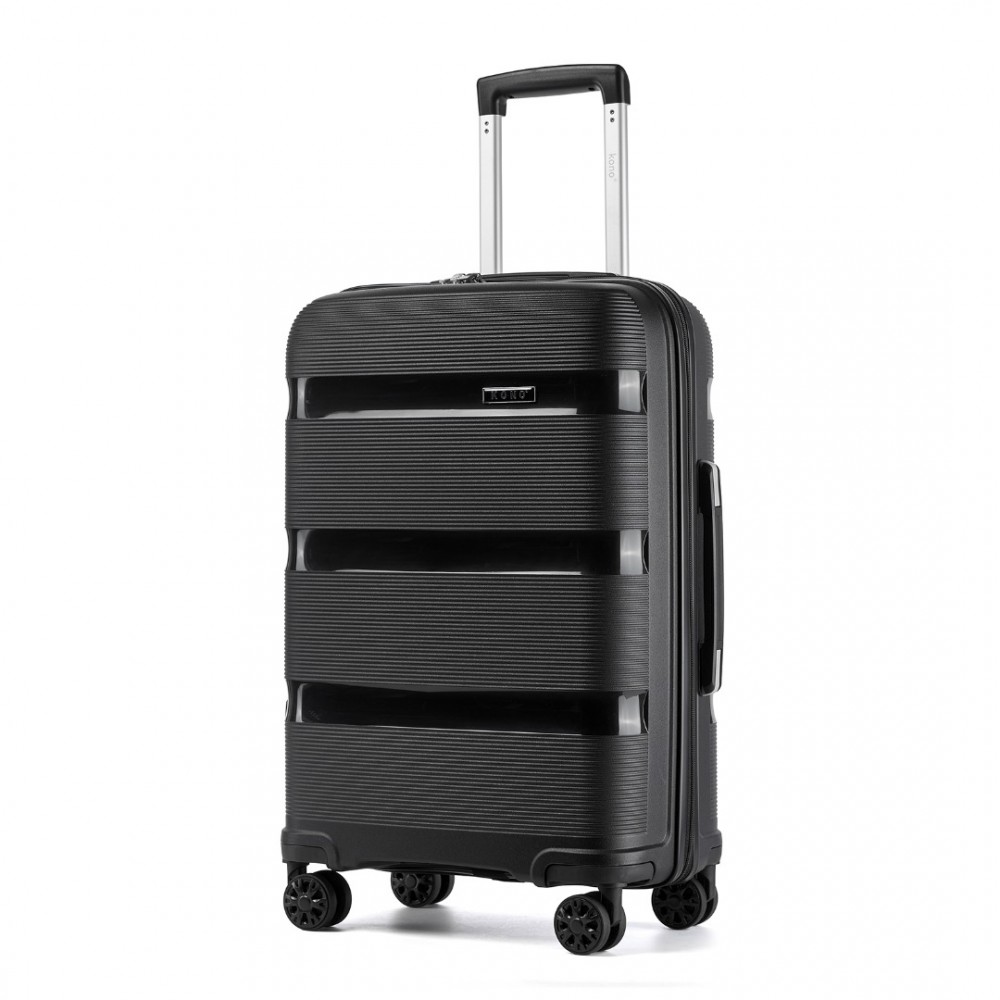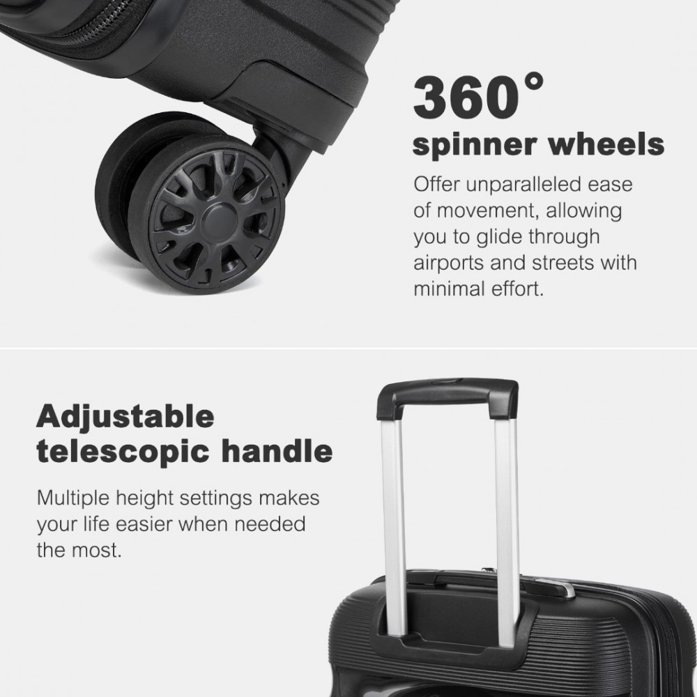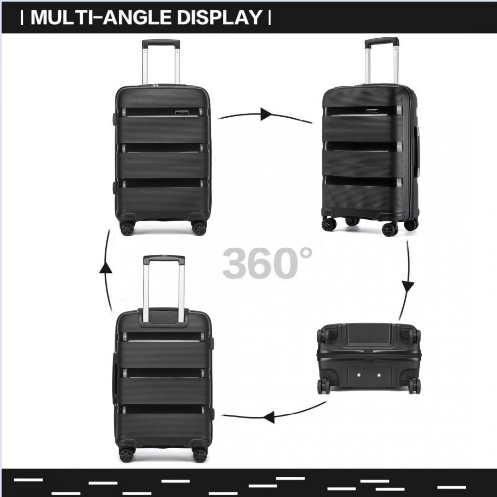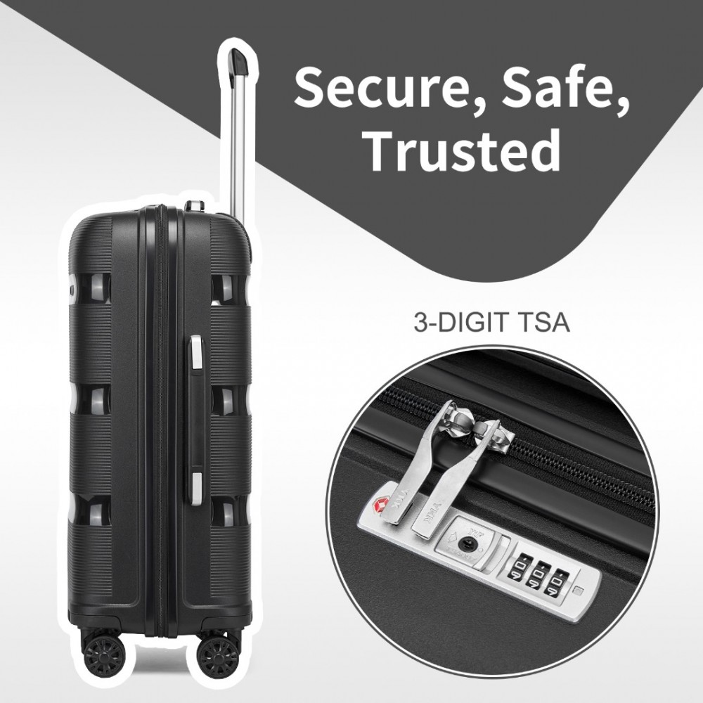 KSK2492 - Kono 3-teiliges PP-Hartschalen-Kofferset – Haltbare Reisekoffer mit TSA-Schloss und 360-Grad-Dreirädern - Schwarz