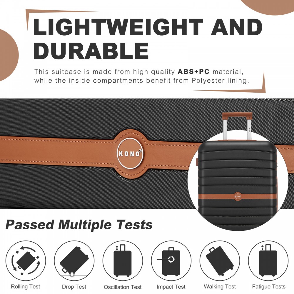 KSK2592 - Kono ABS+PC-Mittelkoffer 24 Zoll mit Streifendesign und Farbblockdetails, mit geräuschlosen Spinnerrädern - Schwarz und braun