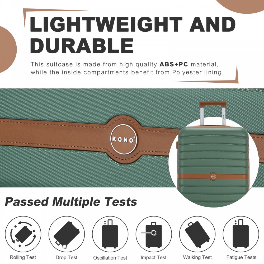 KSK2592 - Kono ABS+PC-Mittelkoffer 24 Zoll mit Streifendesign und Farbblockdetails, mit geräuschlosen Spinnerrädern - Grün und braun