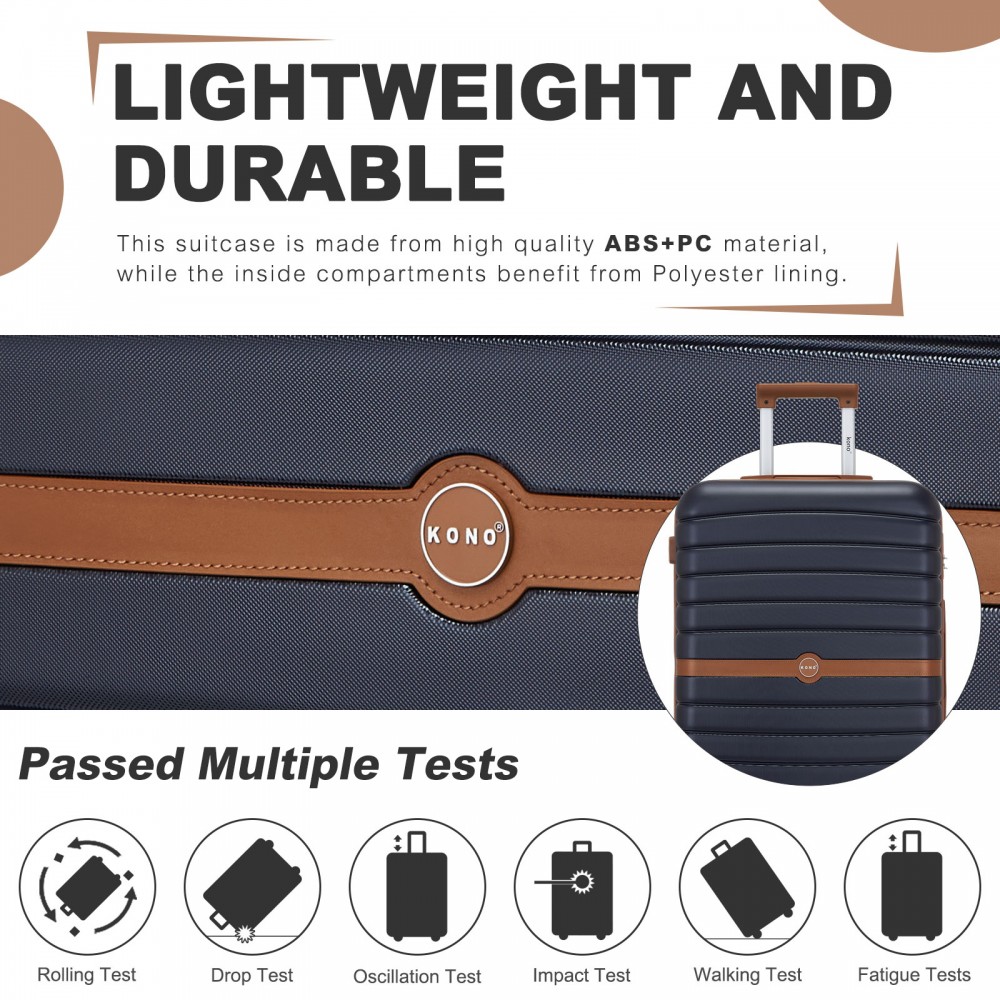 KSK2592 - Kono ABS+PC-Mittelkoffer 24 Zoll mit Streifendesign und Farbblockdetails, mit geräuschlosen Spinnerrädern - Marineblau und braun
