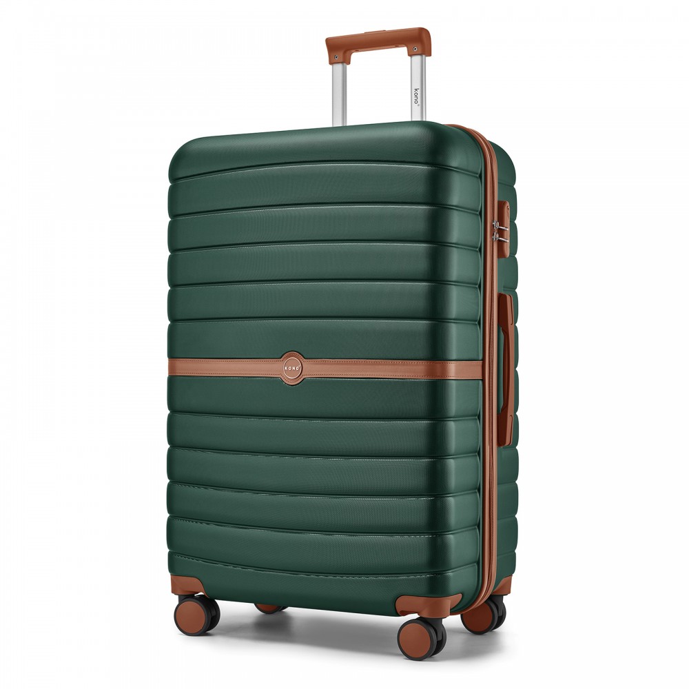 KSK2592 - Kono Großes checked luggage aus ABS+PC mit 28 Zoll, Streifendesign und Farbblockdetails für längere Reisen - Dunkelgrün und braun
