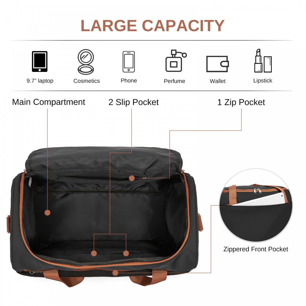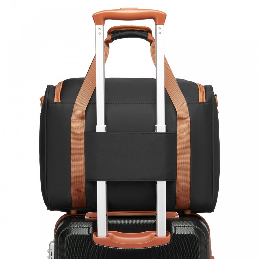 TVK2521 - Kono Kompakte, leichte Personal-Item-Reisetasche 40×30×20 - U-Reißverschluss mit weiter Öffnung & Trolley-Sleeve - Schwarz und Braun