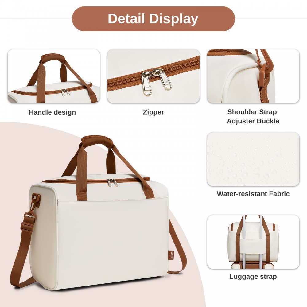 TVK2521 - Kono Kompakte, leichte Personal-Item-Reisetasche 40×30×20 - U-Reißverschluss mit weiter Öffnung & Trolley-Sleeve - Creme
