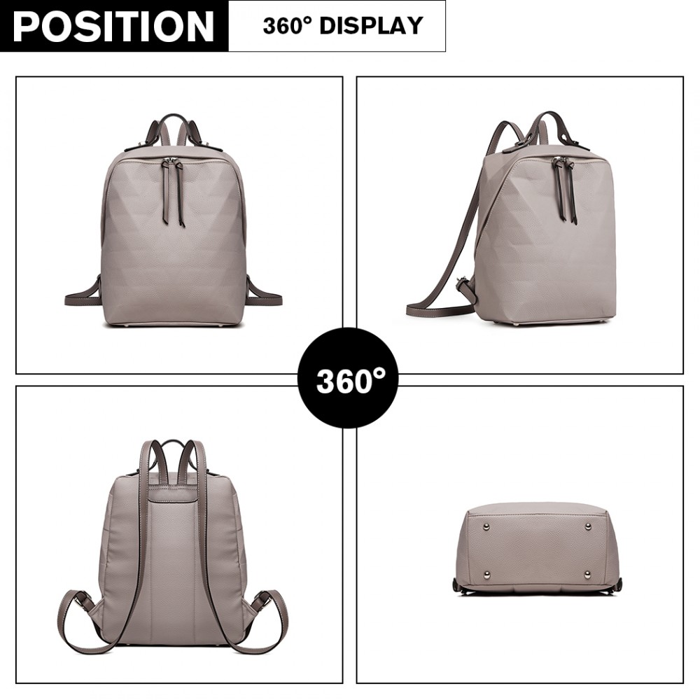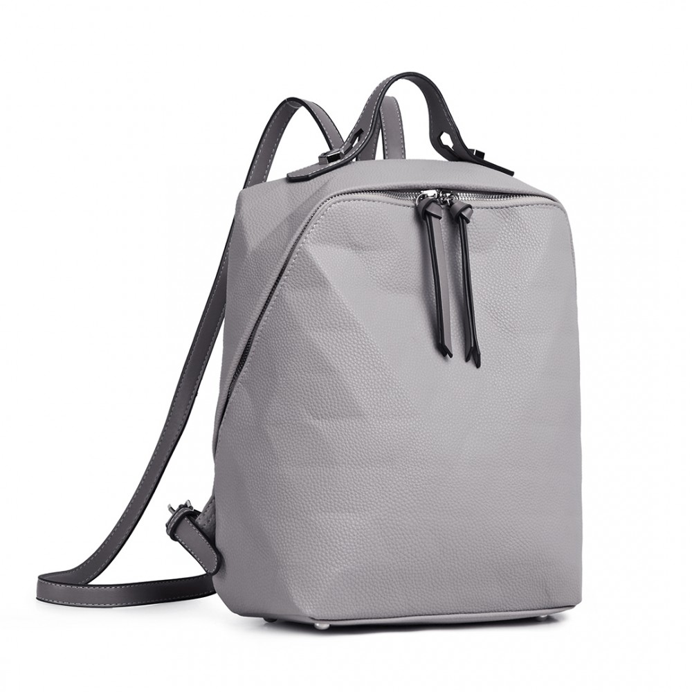 LG1904-MISS LULU PRISMUSMUSTER LEDER LOOK RUCKSACK GRAU
